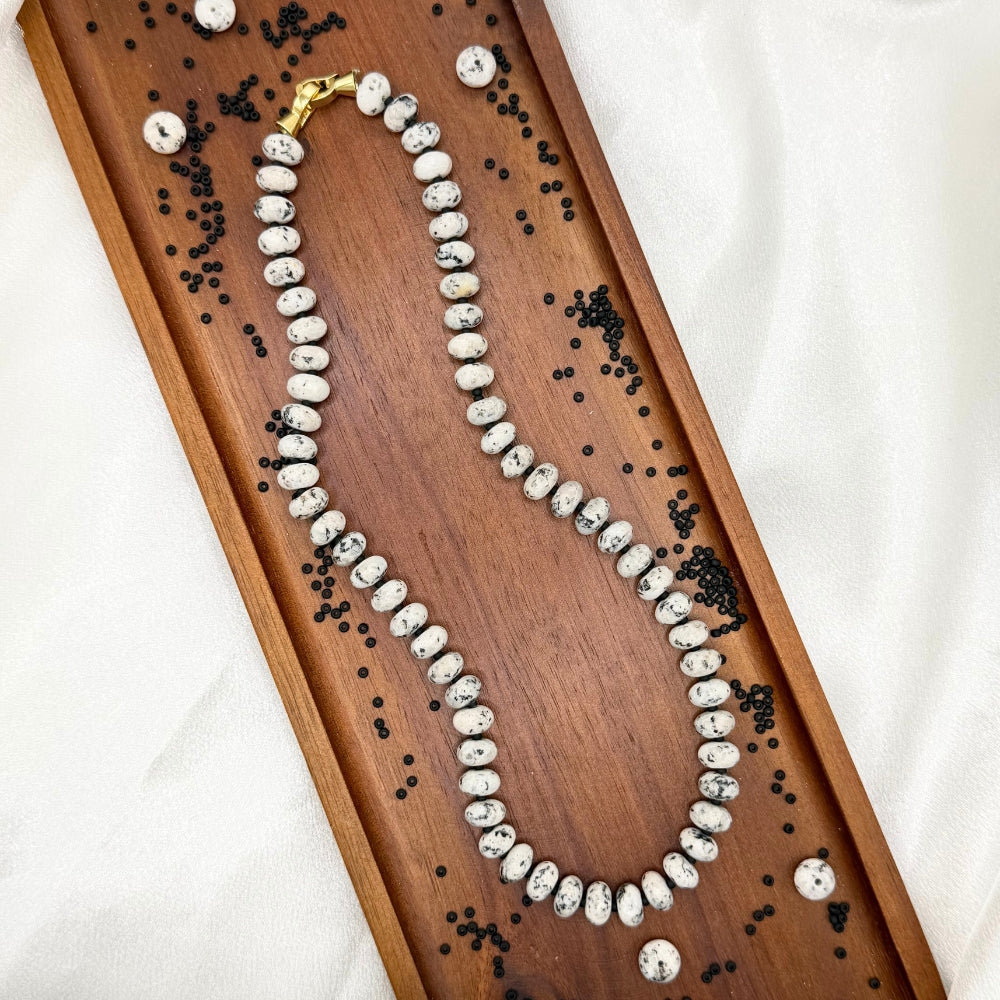 Dalmatian jasper beads with luminous finish