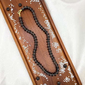 Soft as a whisper, dark as a dream - the Velvet Moon Necklace captures the quiet magic of midnight. Each bead shimmers with deep chocolate and charcoal tones, like moonlight gliding across velvet skies. It’s the kind of piece that feels mysterious yet comforting - grounded, elegant, and a little bit whimsical.