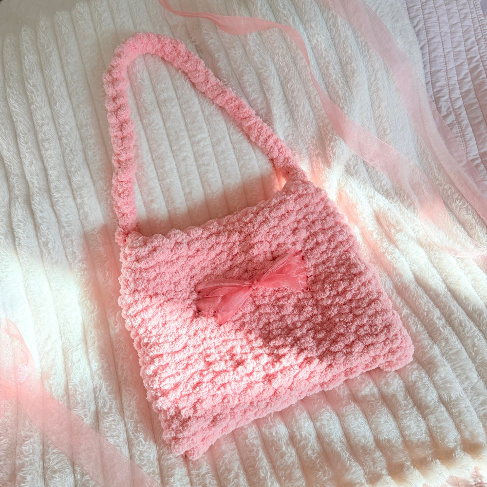 Each loop becomes a soothing rhythm for your hands and mind. Watch your creation grow into a cloud-soft bag that’s roomy enough for your journal, wallet, and everyday essentials. It’s practical, adorable, and comforting all at once.