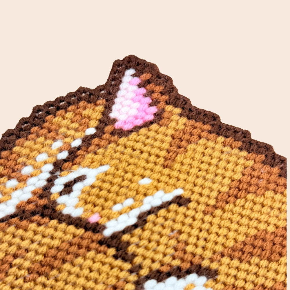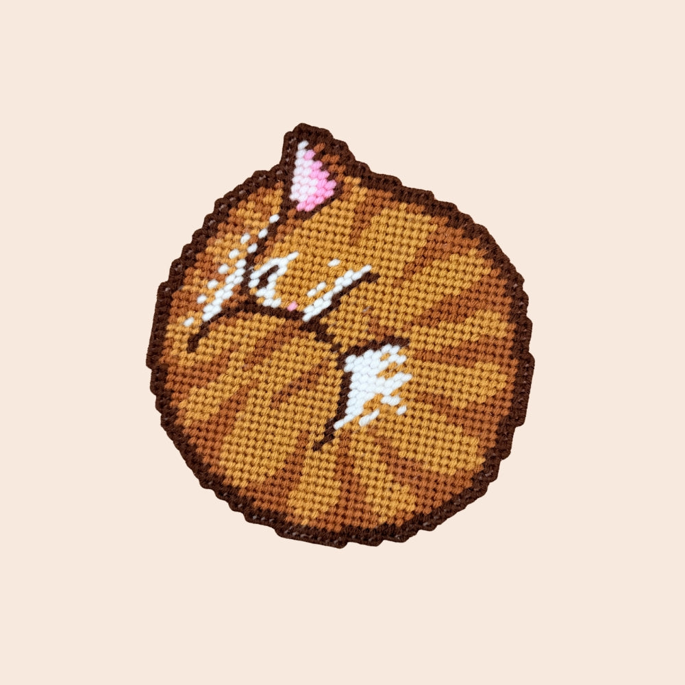 The Cozy Cat Large Coaster DIY Canvas Kit Chestnut features a curled up cat stitched in rich earthy brown tones inspired by falling leaves quiet evenings and the comfort of home. Grounded and soothing this design adds a warm natural feel to your table.