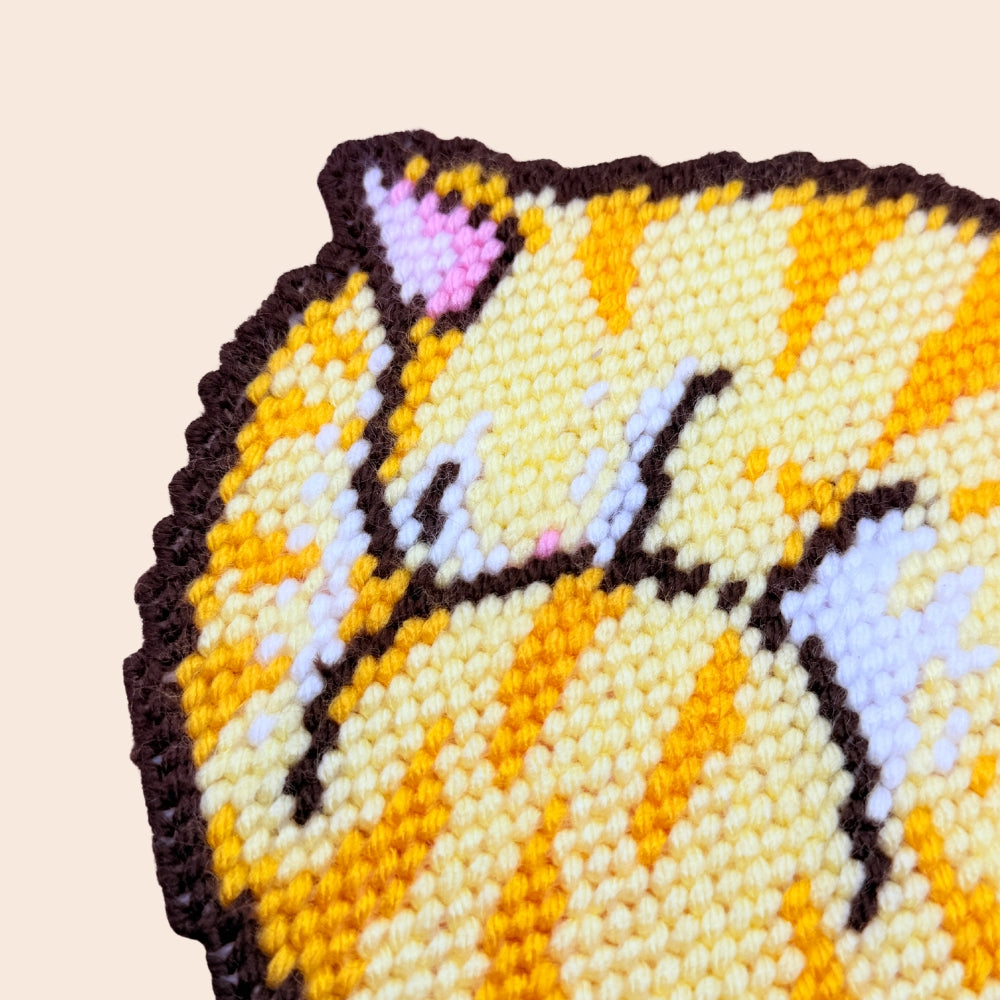 The Cozy Cat Large Coaster DIY Canvas Kit Popcorn features a curled up cat stitched in warm buttery yellow tones that feel cheerful comforting and softly playful. Inspired by cozy movie nights and slow afternoons this design brings a gentle pop of warmth to your table.