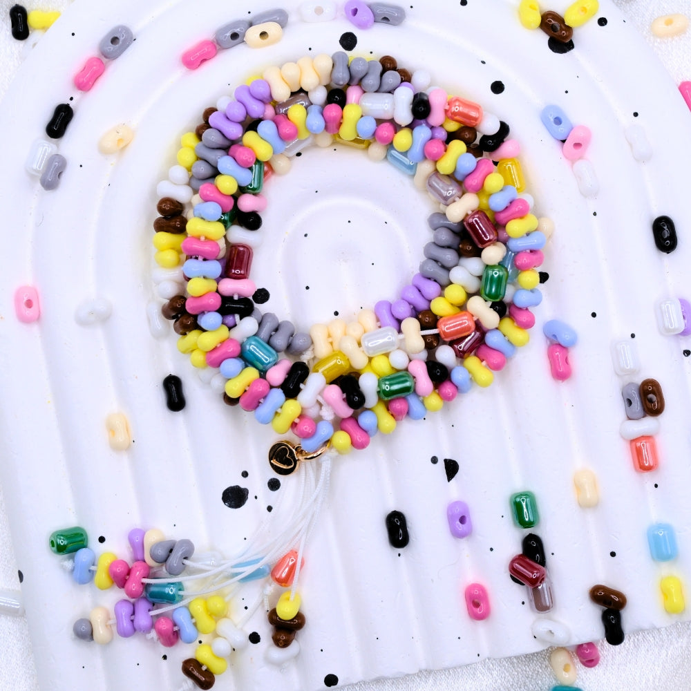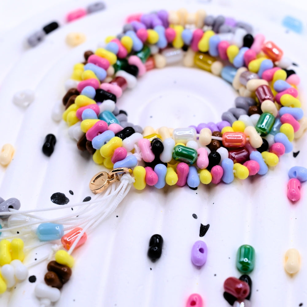 The colorful mix of pastel pink, yellow, lilac, brown, and mint green creates a cheerful rhythm that feels like a little celebration for your hands. As you string each bead, you can feel your mind slow down and your energy lift. It is a mindful escape filled with joy and color.