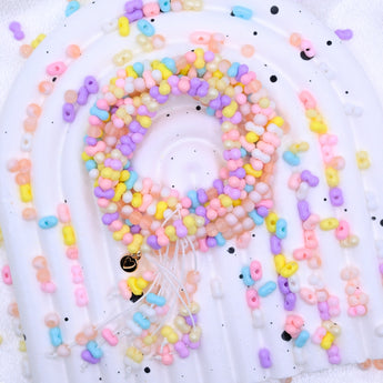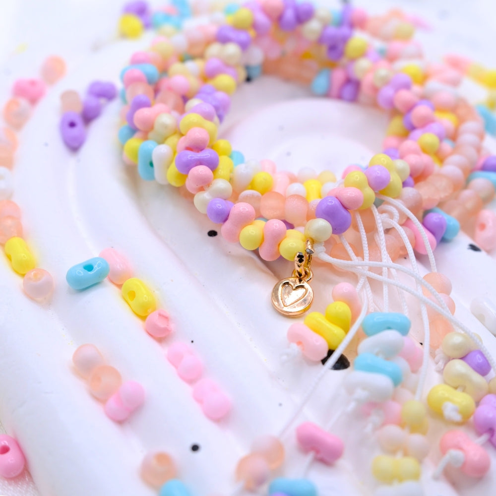 Our calming color palette blends dreamy pastels, cozy neutrals, and joyful pops of color to lift your mood while keeping you grounded. Every bead is chosen to spark small moments of delight, whether you’re crafting after a long day or wearing your finished piece as a quiet comfort.