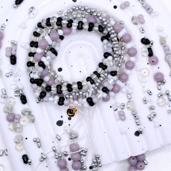 This piece is a quiet reminder to slow down and breathe. The soft shimmer of silver and lilac reflects the feeling of calm returning after a long day. Each bead holds a gentle kind of stillness, the kind that helps your thoughts soften and your heart settle.