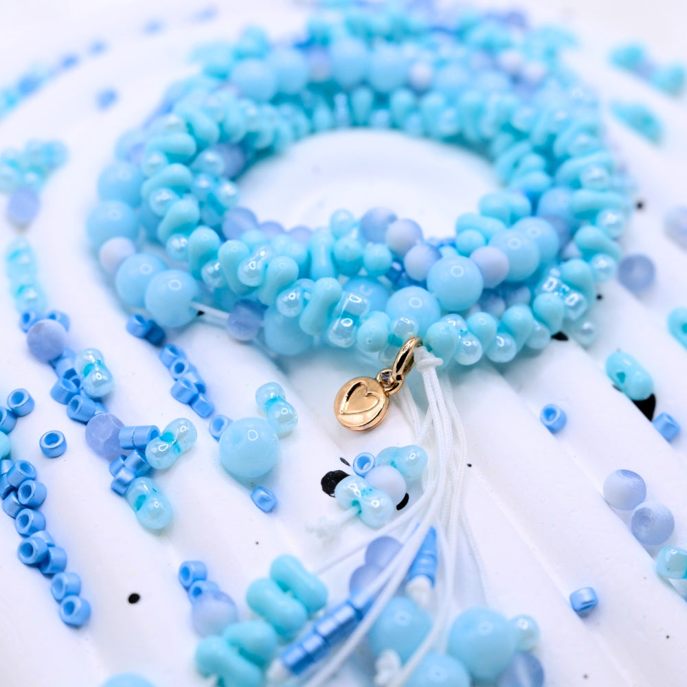 Our calming color palette blends dreamy pastels, cozy neutrals, and joyful pops of color to lift your mood while keeping you grounded. Every bead is chosen to spark small moments of delight, whether you’re crafting after a long day or wearing your finished piece as a quiet comfort.