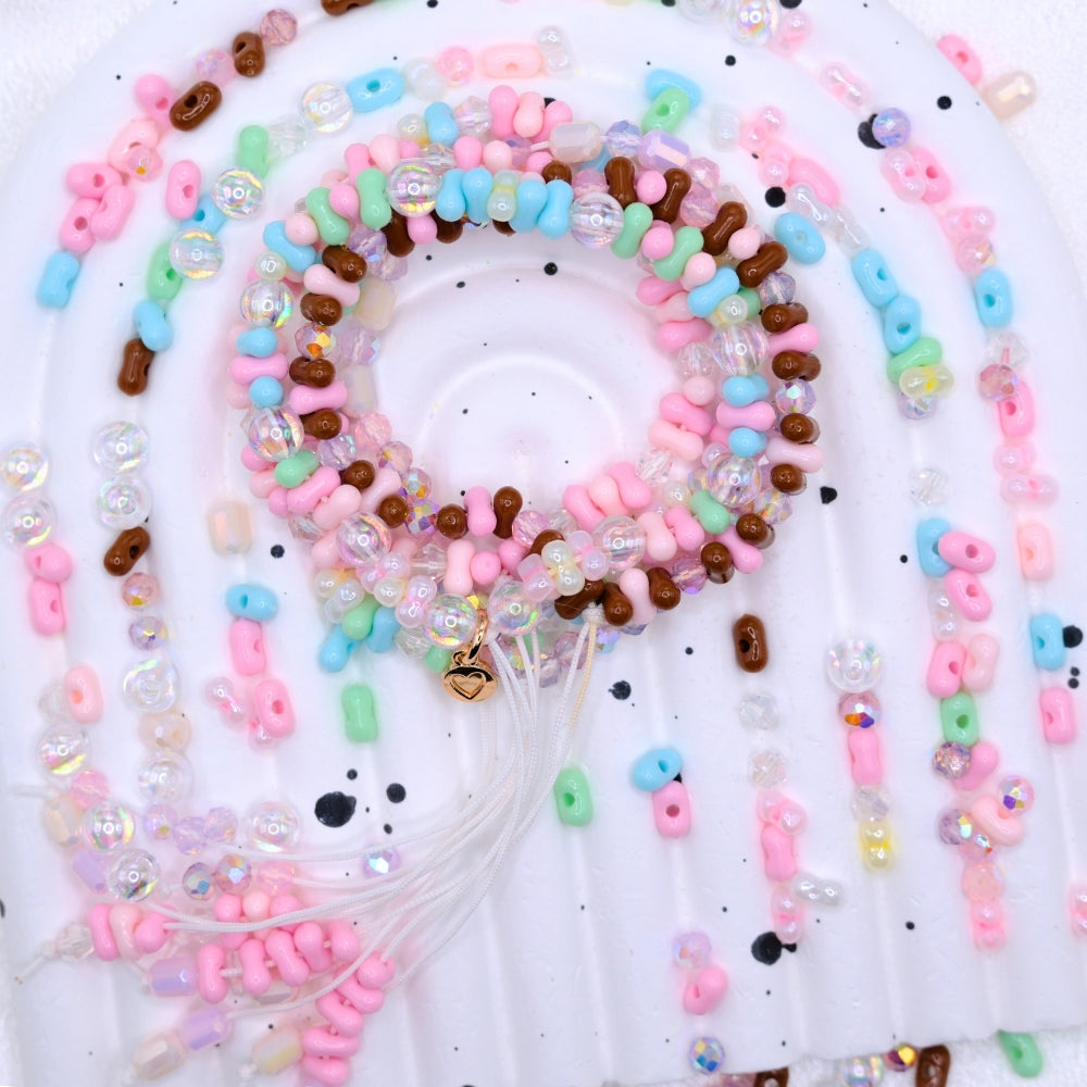 Our calming color palette blends dreamy pastels, cozy neutrals, and joyful pops of color to lift your mood while keeping you grounded. Every bead is chosen to spark small moments of delight, whether you’re crafting after a long day or wearing your finished piece as a quiet comfort.