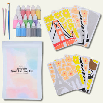 As you peel, pour, and brush, your hands bring iconic places to life in the softest flow of sand. Each grain settles into patterns that feel like postcards from your imagination. Whether you’re craving adventure, longing for beauty, or simply need a mindful pause, this kit lets you journey inward while celebrating the wonders of the world outside.