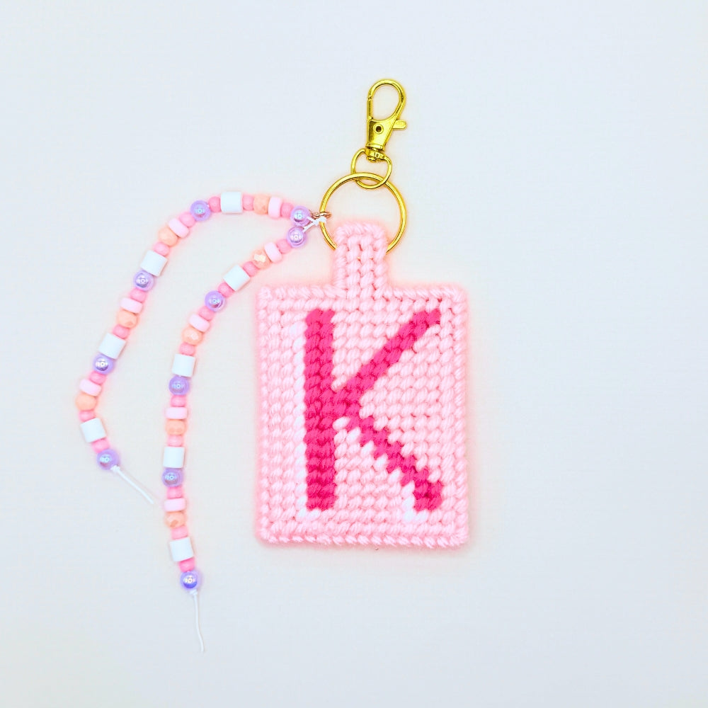 Strawberry Pink Initial Keychain Easy Stitch Kit
