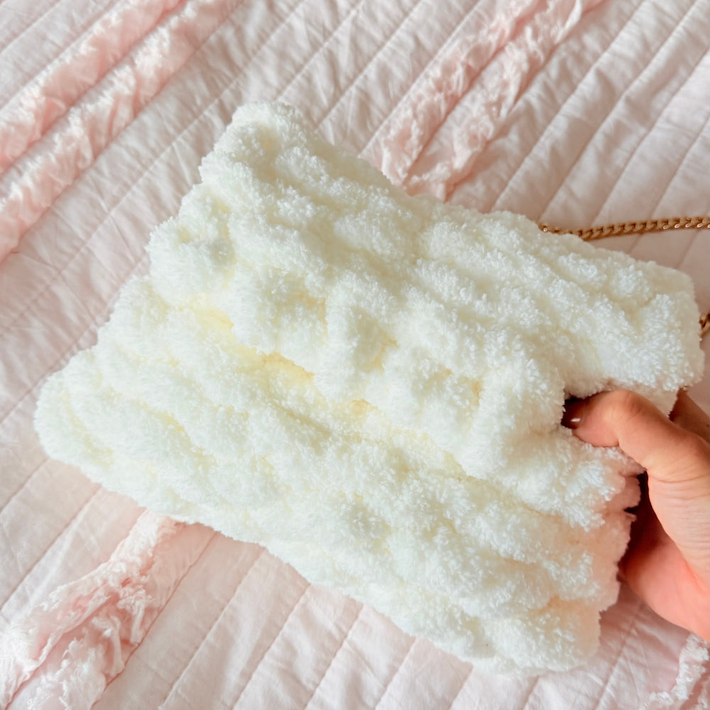 Wrap yourself in cozy charm with the Fantasy Cloud Flap Bag DIY Making Kit – Snow Bunny. This soft, dreamy white bag feels like holding a fluffy cloud — light, plush, and effortlessly elegant. Its gold chain adds a touch of sophistication, creating the perfect blend of comfort and style.