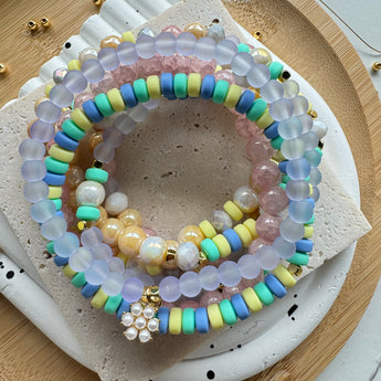 Contain: Glass beads, with real 18k gold plated brass charm.
